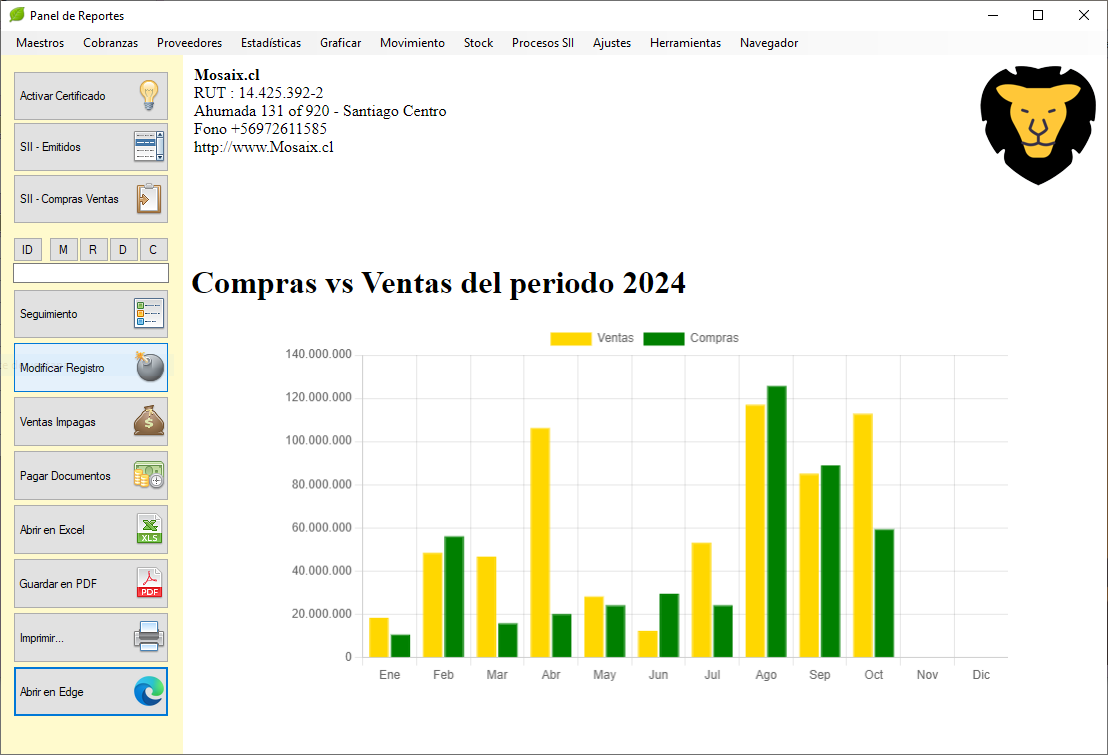 Supervisión de libros con el RCV del SII, gestión de documentos impagos, cartolas, comisiones de venta, etc.